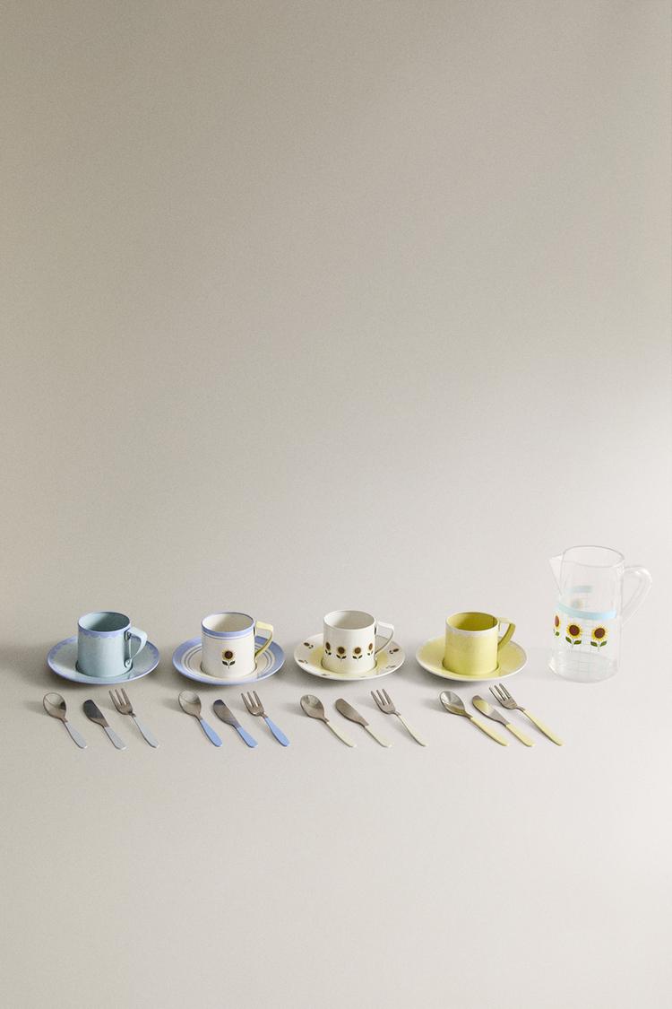 CHILDREN'S METAL TABLEWARE TOY SETChildren's toy set consisting of tableware. The set includes 4 plates, 2 tumblers, 2 cups, and a pitcher.