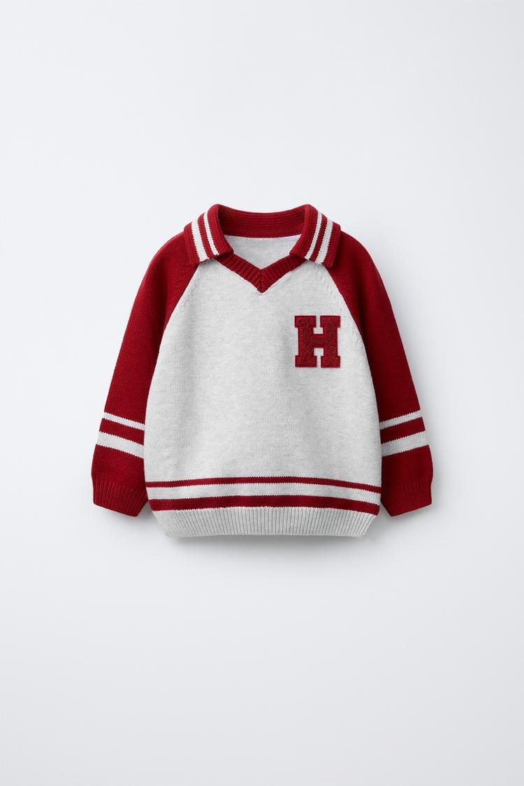 Knit polo shirt with polo neck and long sleeves. Terry patch appliqué on the chest.