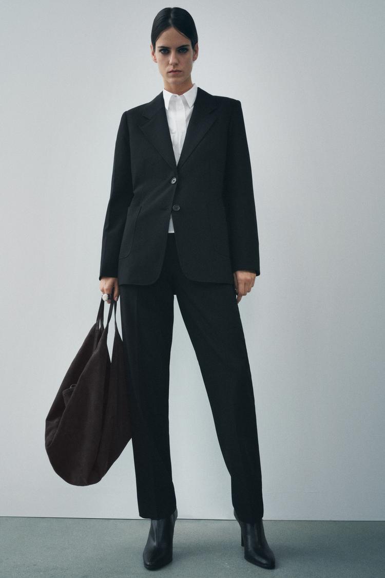 ZARA WOMAN COLLECTIONPants with a low waist with belt loops. Side pockets and back welt pockets. Ironed crease at front. Front zip, button, and metallic hook closure.