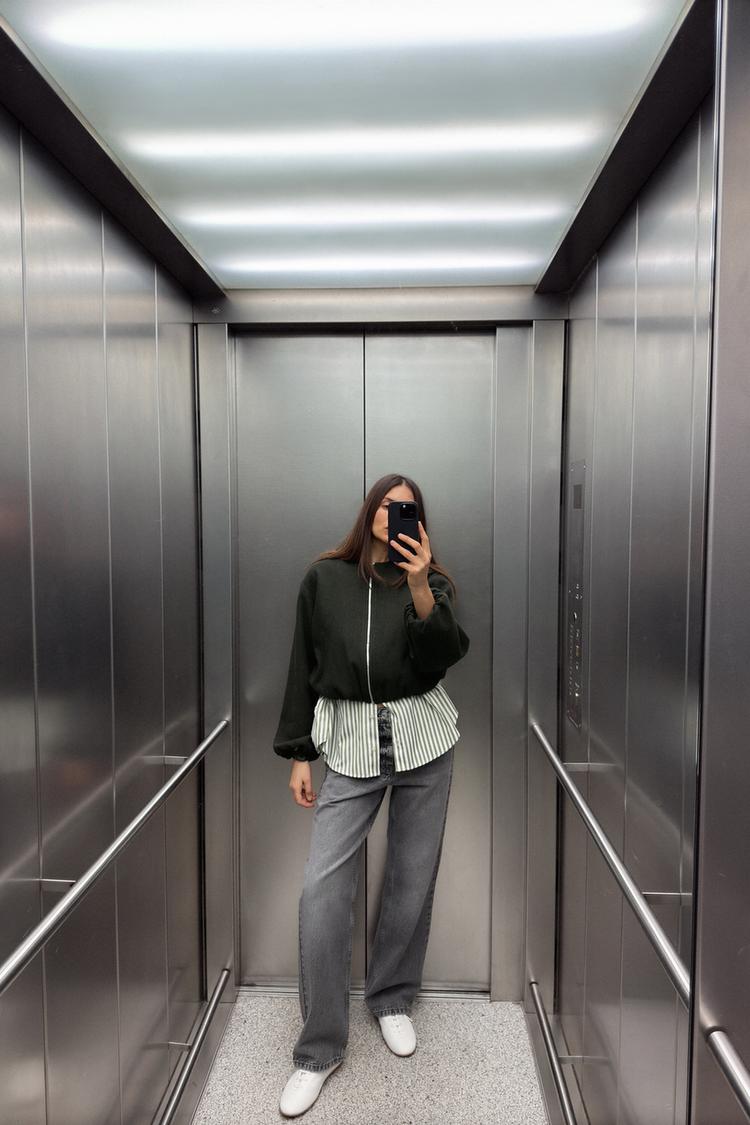 Pants with an adjustable double high elastic waistband with drawstring and matching fabric detail. Front darts. Front pockets and back false welt pockets. Wide leg.