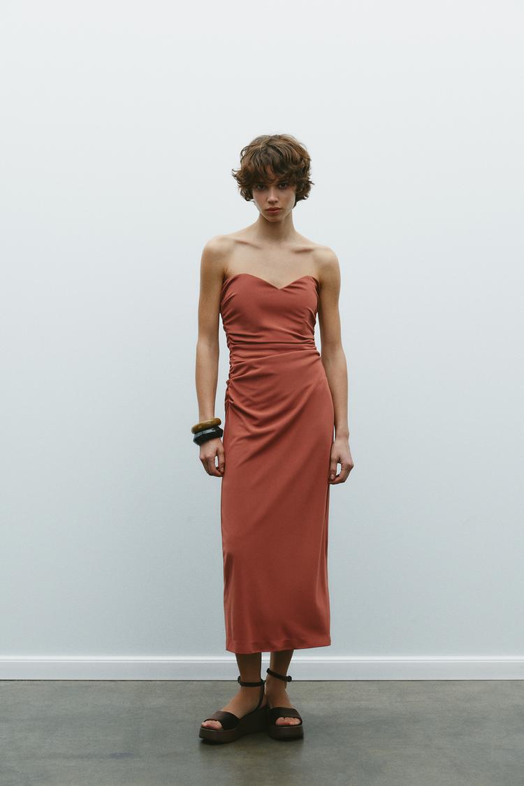 Short dress made of a linen blend. V-neck and thin adjustable straps. Matching lining. Matching cutwork embroidery detail. Invisible back zip fastening.
