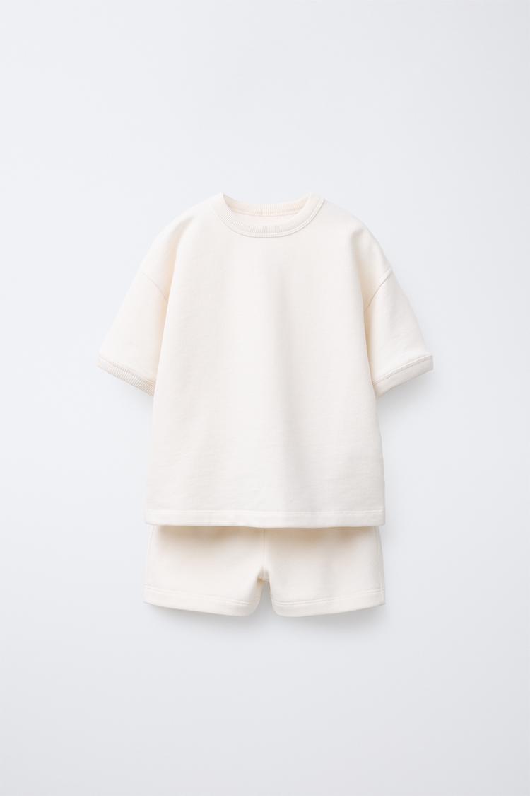 PLAIN T-SHIRT AND BERMUDA JOGGING SETTwo-piece set. Round neck, short-sleeve T-shirt. Bermuda shorts with elastic waistband and adjustable front drawstrings. Front pockets.Model is 43.7" tall and wears size 4.