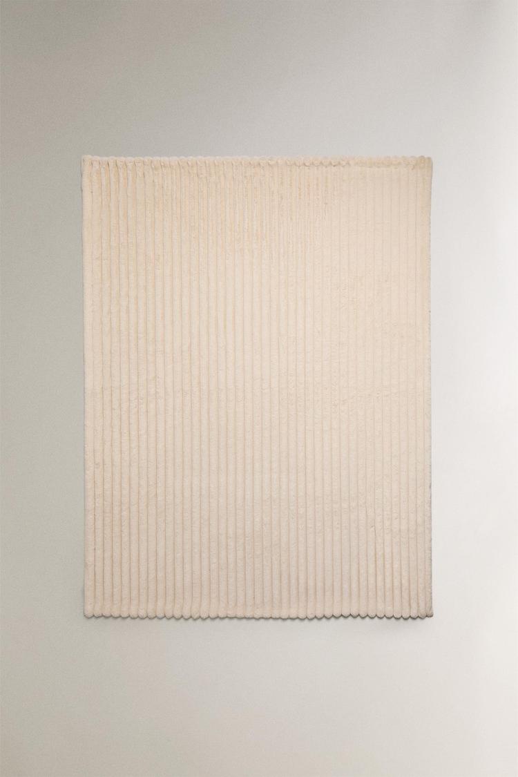 Faux fur blanket with a striped texture. It provides warmth, softness, and lightness, making it ideal as a decorative blanket for the sofa or to place at the foot of the bed.