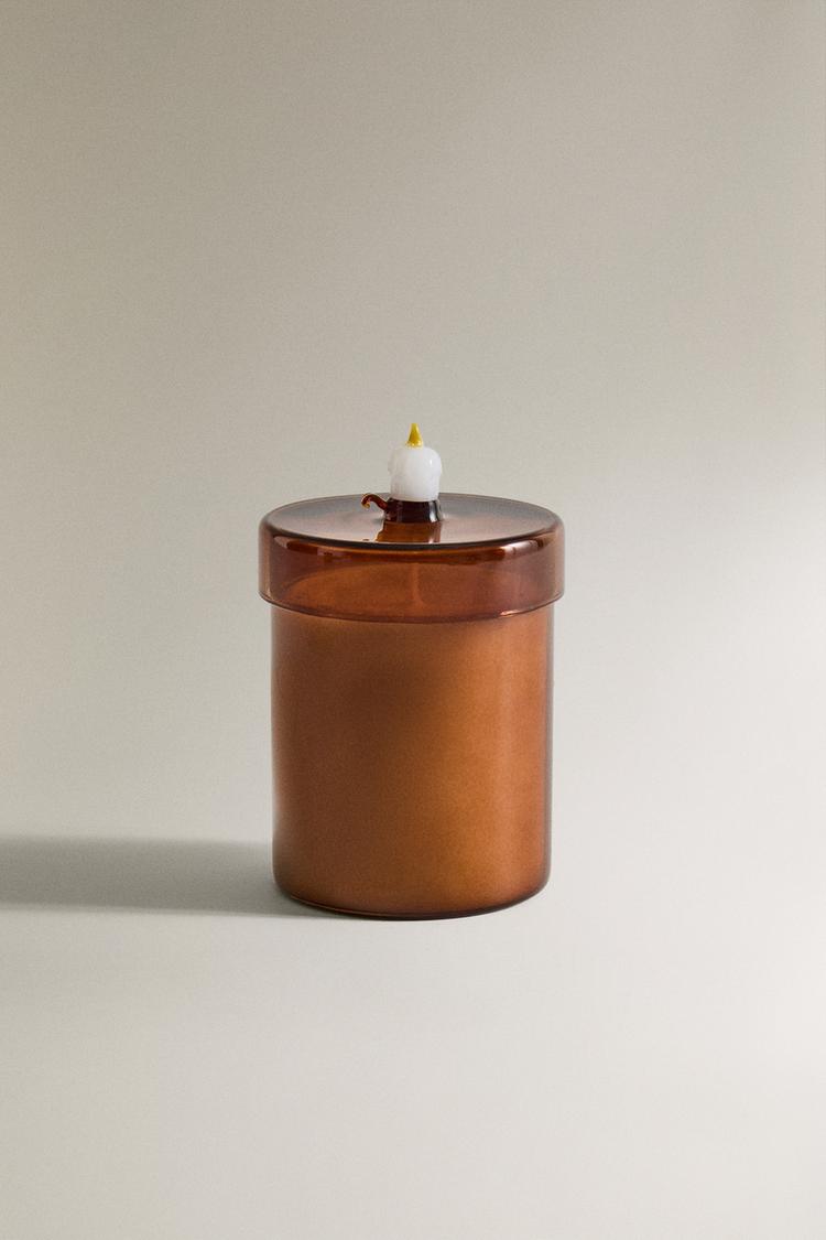 Scented candle made of vegetable wax, with a Christmas detail in borosilicate glass on the lid.