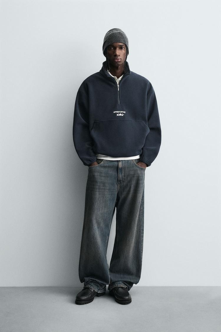 EMBROIDERED QUARTER-ZIP FLEECE SWEATSHIRT - 2878/301 - Zara Reviews | Zara Reviews