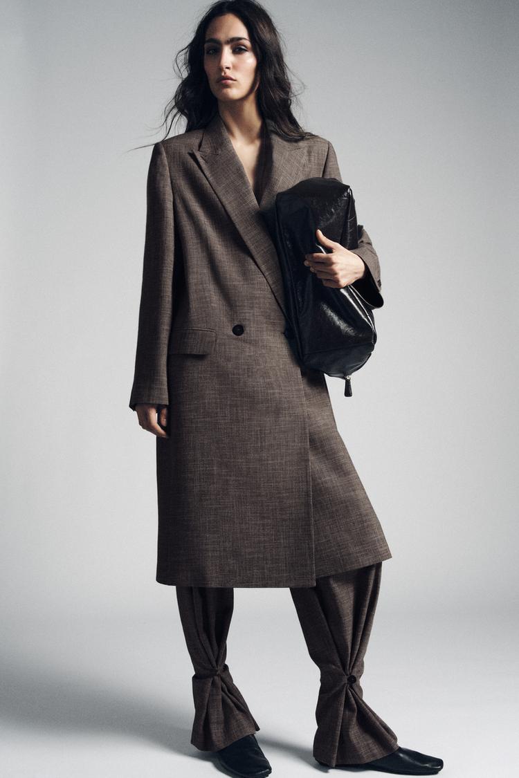 Frock coat made of viscose yarn. Notched lapel collar and long sleeves with openings and buttons. Front flap pockets. Front double-breasted button closure.