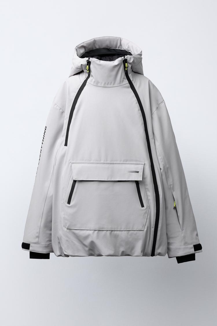 Kangaroo-style jacket with windproof and water-resistant fabric up to 1,500mm water column, with a double layer that combines an outer coating with a membrane that prevents water and air penetration, while providing breathability. Main heat-sealed seams reinforce the garment's protection against snow and rain. Equipped with RECCO®* technology to help rescue professionals find you in case of accident, avalanche, or getting lost in a hard-to-reach area. Kangaroo-style jacket with hoodie and high collar with zipper closure. Long sleeves with adjustable adhesive and inner cuff with thumbhole. Hidden zip pocket for ski pass. Heat-sealed front zipper closures. Zipper detail for greater ventilation at the armhole. Kangaroo-style front pockets, with heat-sealed zipper closure and flap with adhesive closure. Interior straps for greater comfort when carrying the garment. Hem with removable anti-snow inner skirt and rubber finish with adjustable side stoppers. *For any reference about the RECCO® system, consult their website: https://recco.com