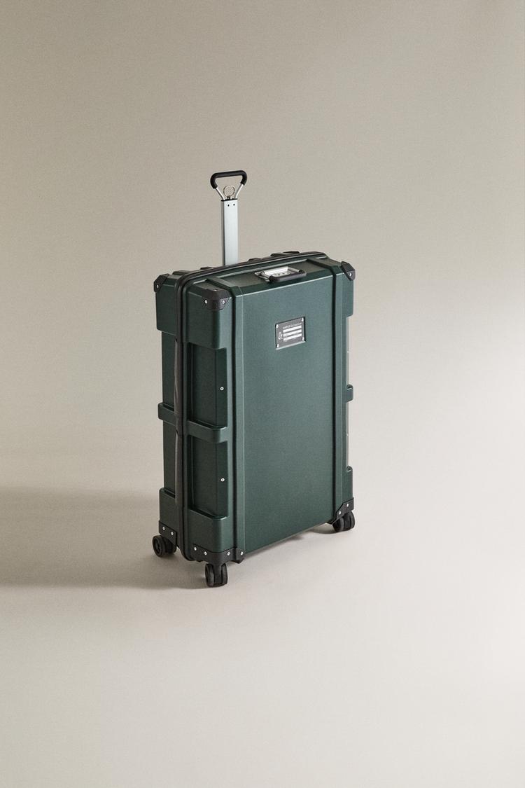 It has aerospace-grade aluminum handles that reduce weight, a spacious interior pocket, and a customizable plate. Interior with an iconic padded lining made of nylon.